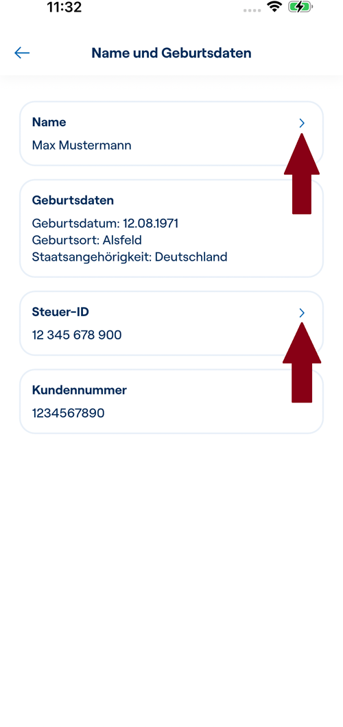 Achtung: Bei einer Namensänderung benötigen wir einen Nachweis, zum Beispiel Ihren Personalausweis oder Ihre Heiratsurkunde. Diesen können Sie ganz einfach als Foto oder Datei hochladen.