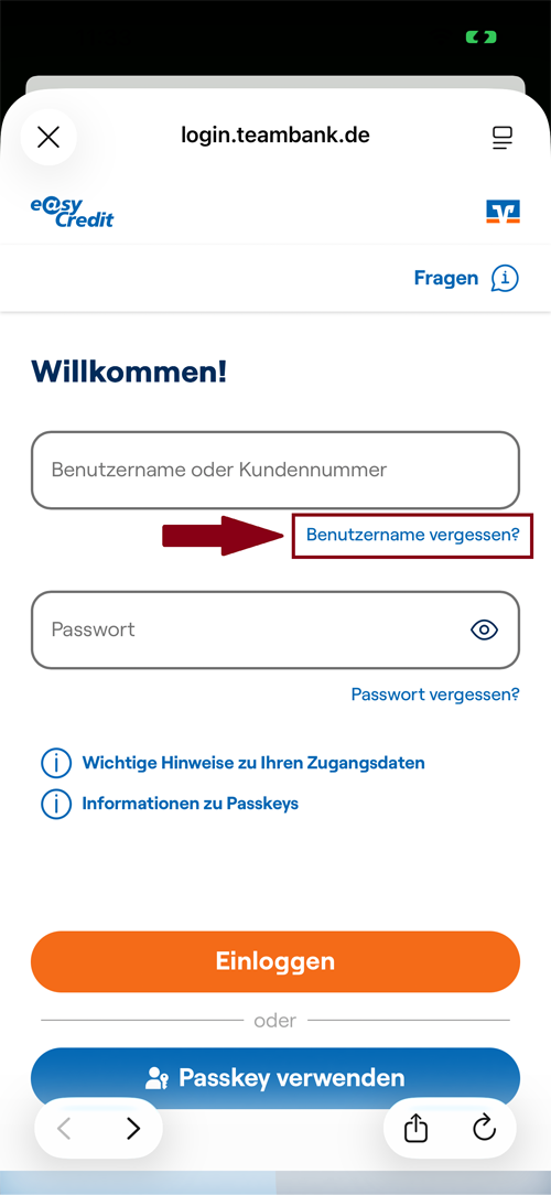 Kundennummer/Benutzername anfordern