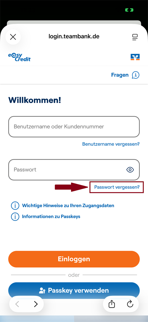 Fordern Sie Ihr Passwort und Ihre Kundennummer direkt über die Login-Seite an.