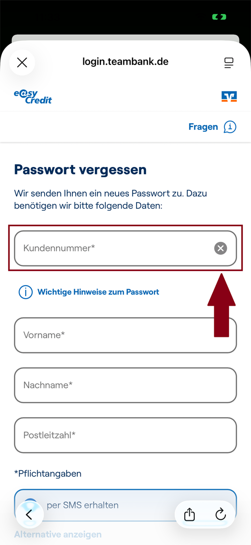 Hat sich in der Zwischenzeit Ihre Handynummer oder Ihre E-Mail-Adresse geändert, dann schicken Sie uns bitte eine E-Mail an service@easycredit.de mit